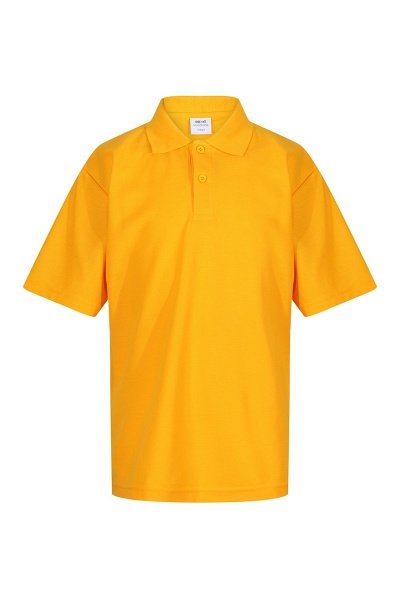 This item is a pre-loved yellow polo shirt which has been kindly donated by a pupil at the school and is now available to go home with another pupil.